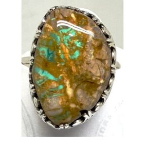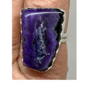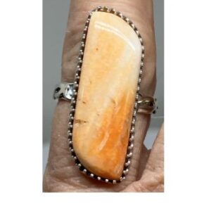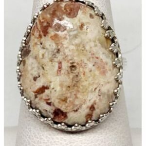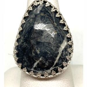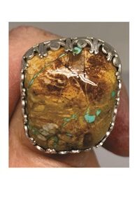 Rings have been created in many stones and shapes in small to large sizes. They all have Fine Silver backs and Sterling Silver bands.