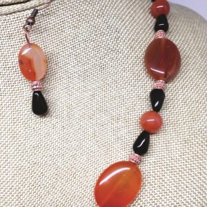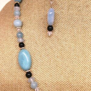 Dark purple 18″ Amethyst Necklace with large oval and round beads. Smaller beads and Silver Findings. The earrings have the same combinations. Matching 7-1/2″ bracelet is separate item.