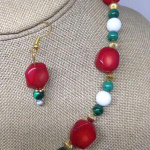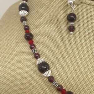 Dark purple 18″ Amethyst Necklace with large oval and round beads.  Smaller beads and Silver Findings.  The earrings have the same combinations.  Matching 7-1/2″ bracelet is separate item.