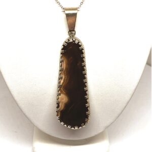 Beautiful purple Amethyst Pendant with white matrix. It was cut, polished and completed by hand in Reno Nevada, USA. Sterling Silver Bezel and Bail. Fine Silver back. The pendant is approximately 1-1/2″ x 1-1/2″. Amethyst is the birthstone for February.