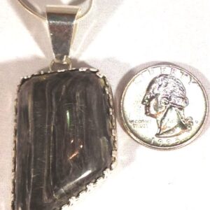 The beautiful blue Aquamarine stone in this Pendant that has silver pyrite mixed throughout. It has a Sterling Silver bezel on the sides and Fine Silver on the back. The size of this pendant is approximately 1″ x 1″. Aquamarine is the birthstone for March.