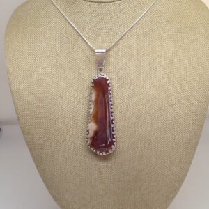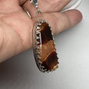 The turquoise in this bolo has a great mixture of blue and green turquoise mixed with brown. The stone came from Tonopah, Nevada USA and has Sterling Silver bezel. The back is Fine Silver. The real leather cord is about 42″ long and has Sterling Silver Tips. The stone is approximately 2-1/4″ x 1-1/4″. It was cut, polished and completed by hand in Reno, Nevada USA. Turquoise is birthstone for December.