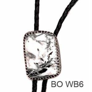 Turquoise bolo with mixture of blue and green turquoise mixed with brown. Stone from Tonopah, Nevada USA. Sterling Silver bezel. Fine Silver back. 42″ leather cord with Sterling Silver Tips. Approximately 2-1/4″ x 1-1/4″. Cut, polished and completed by hand in Reno, NV USA. Birthstone for December.