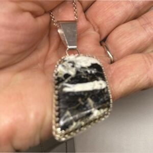 This Bracelet is Sterling Silver from Italy. It is sometimes called a paper clip style. The length is 7.5″ and is adjustable. The width is 4.4 mm.