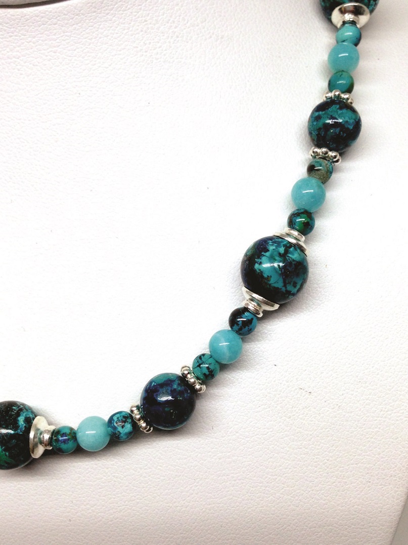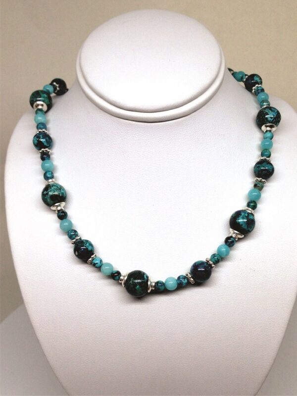 Necklace, Blue, Green, Chrysocolla, 17″