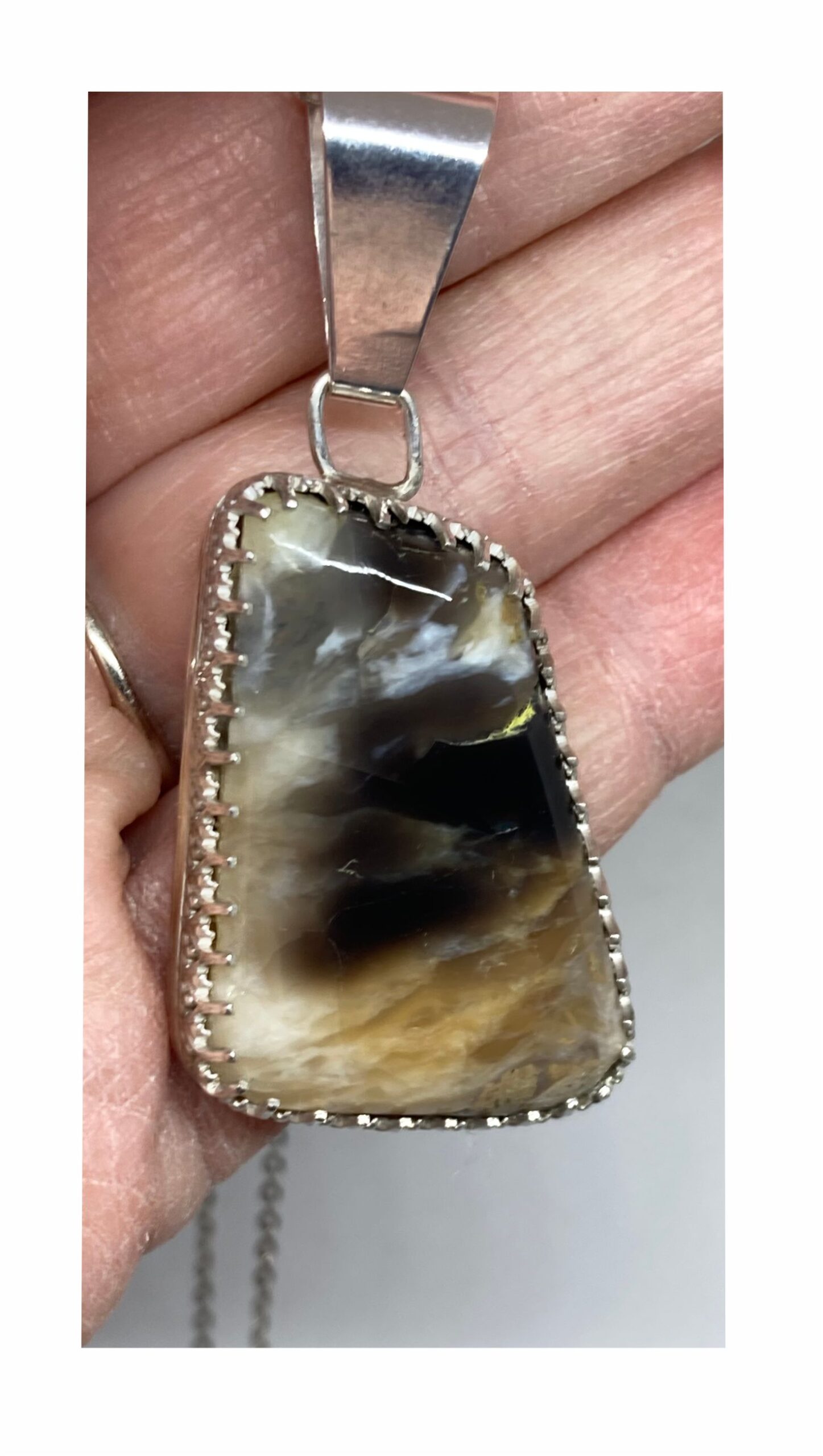Tags: Handcrafted in Reno NV USA, Made in USA, Nevada Opal, Nevada Tan Opal, October Birthstone, One of a Kind, Opal Pendant, Silver, Tan and Brown Opal, Tan Opal Pendant, Tan Pendant