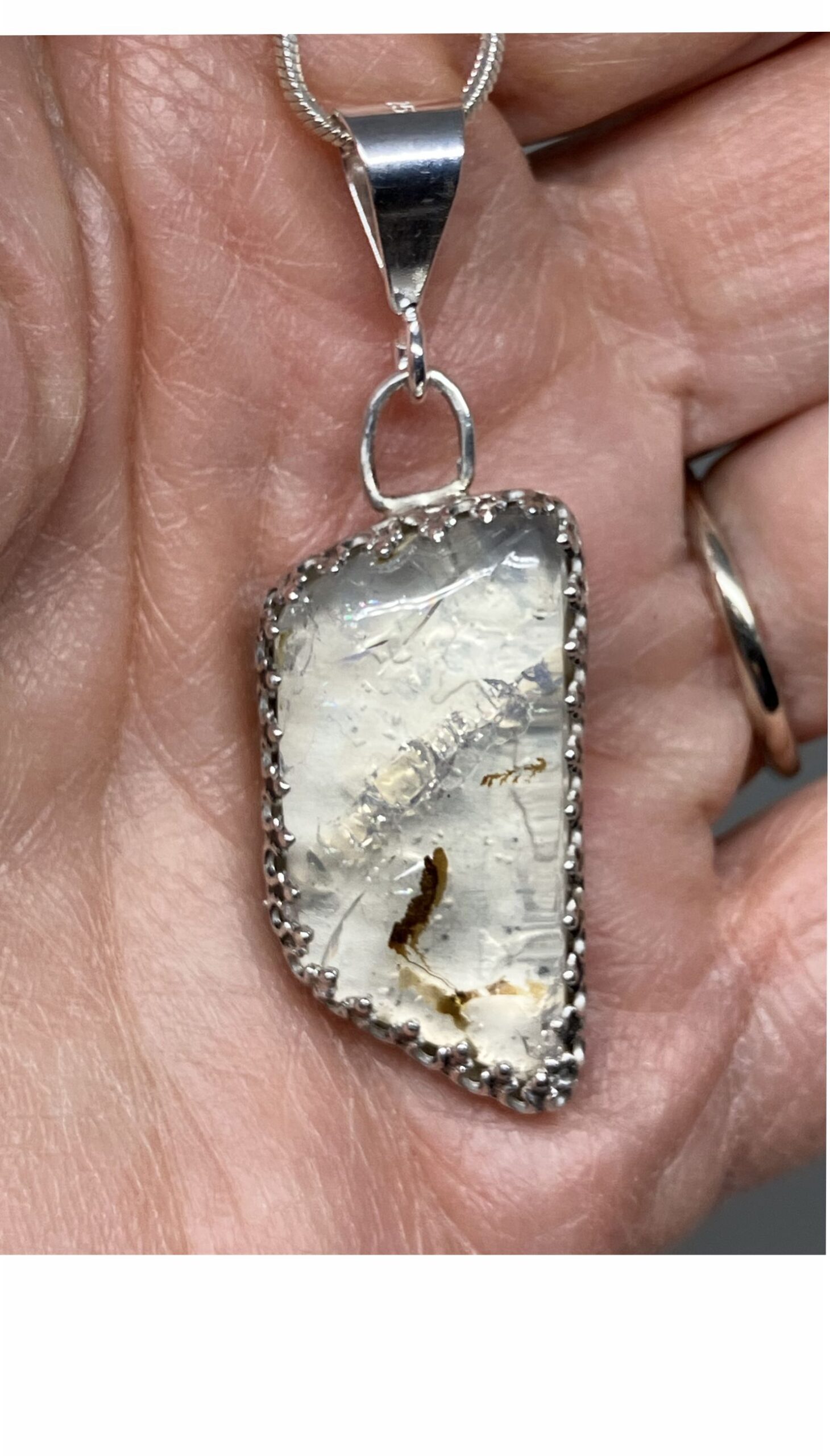 Tags: Clear Opal, Clear Opal Pendant, Cut & Polished in USA, Fine Silver, Made in USA, October Birthstone, One of a Kind Opal, Opal Pendant, Real Opal, Sterling Silver, Transparent Opal, Unique Pendant