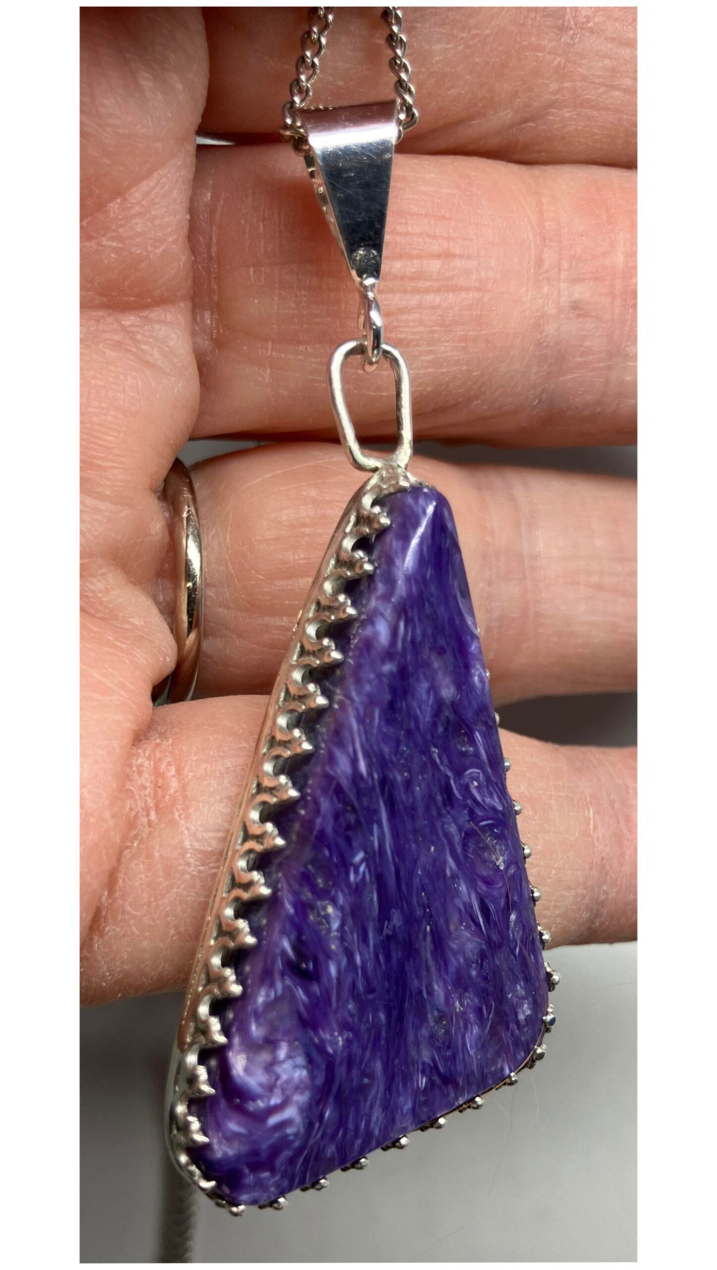 Tags: Charoite Pendant, Fine Silver, Handcrafted in Reno NV USA, Made in USA, One of a Kind, Purple Pendant, Siberia Stone, Sterling Silver, Unique Pendant